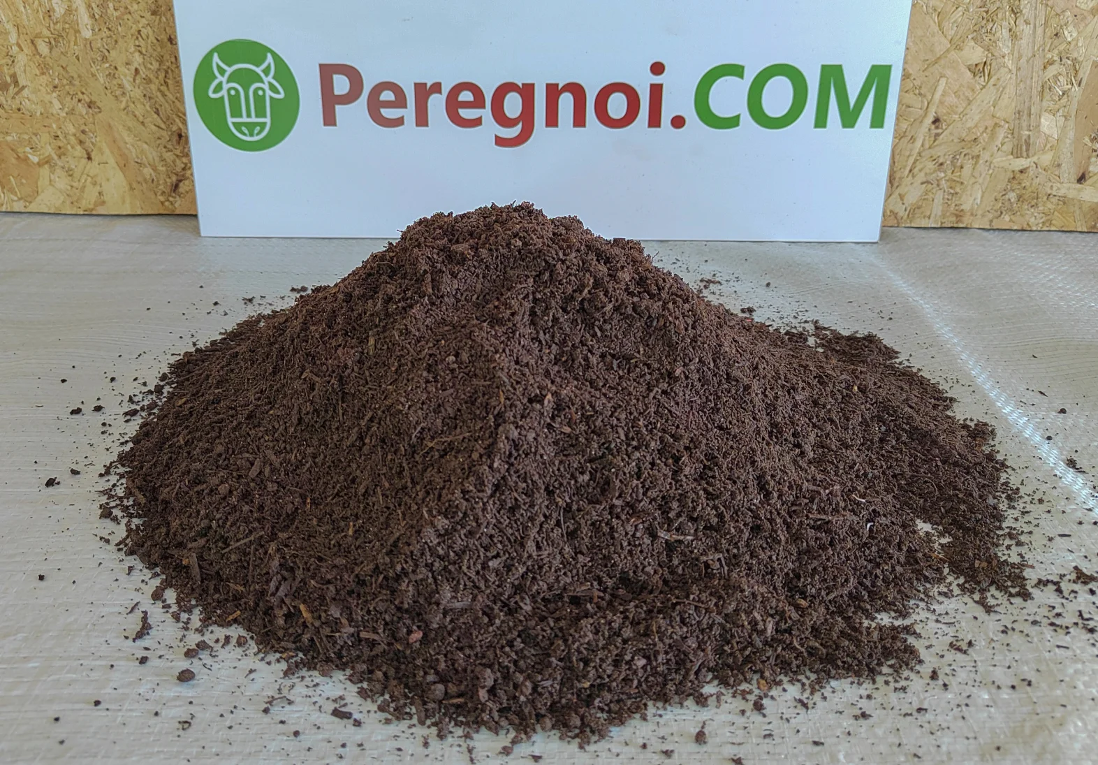 Каждый мешок весит около 12–14 кг и имеет мелкую, рассыпчатую структуру. Перегной полностью готов к применению: просто внесите в грунт или используйте для мульчирования. Для теплиц, огородов и садов — это отличное решение без затрат на хранение навоза в больших объёмах.